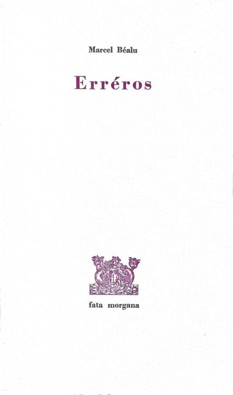 Editions Fata Morgana,1983 .In-8 broché (21,5 x 12,5 cm), 53 p., 2 illustrations en noir hors-texte de lauteur.Tirage à 700 ex., dont 680 sur Vergé non numérotés. Edition originale sur Vergé, avec un envoi autographe signé de Marcel Béalu. Très bel exemplaire.