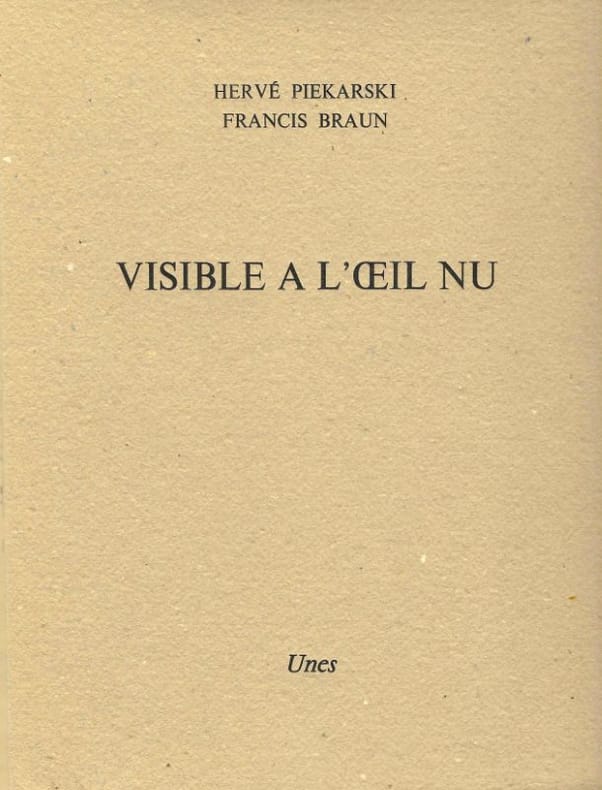 Editions UNES, 1984. In-4 en feuilles (30 x 22,5 cm), couverture à rabats beige, non paginé [26] p., contient trois peintures à lacrylique originales de Francis Braun. Tirage à 40 exemplaires sur Colombe du Moulin de Larroque au fort grammage, non rogné.Edition originale. Ex. n° 34. /// Piekarski, Hervé (1955, Marseille) Aux éditions Unes : « Il sagit pour lauteur de dresser face à la fêlure intime et la faillite collective un dispositif poétique aux ramifications infinies pour résister à la submersion du langage. Piekarski a également été le maître duvre de lédition des carnets de Roger Giroux dans les années 1980 (Journal du poème, Soit donc cela, Blank). »// Très bel exemplaire.