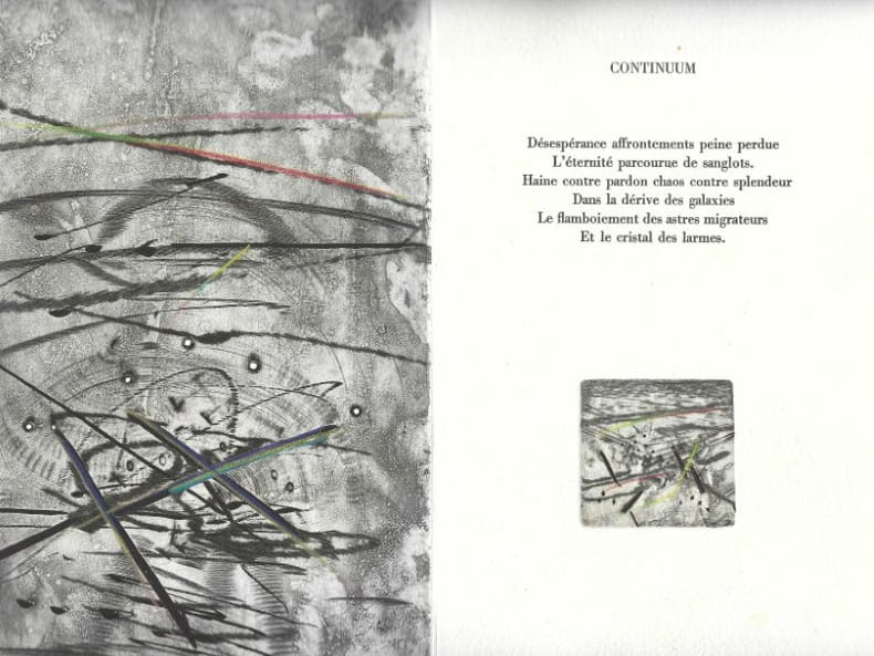 Paris, chez Claude Blaizot, 1986 .In-8, en feuilles, couverture imprimée sous emboîtage de l'éditeur, illustré de 10 gravures de Julius Baltazar, en taille-douce par Alain Piroir à Lyon, rehaussées à la main au crayon arlequin par l'artiste. Tirage à 80 exemplaires numérotés sur papier chiffon du moulin de Pombié. Envoi autographe de lauteur. Ex. n° 62 signé par lauteur et lartiste.