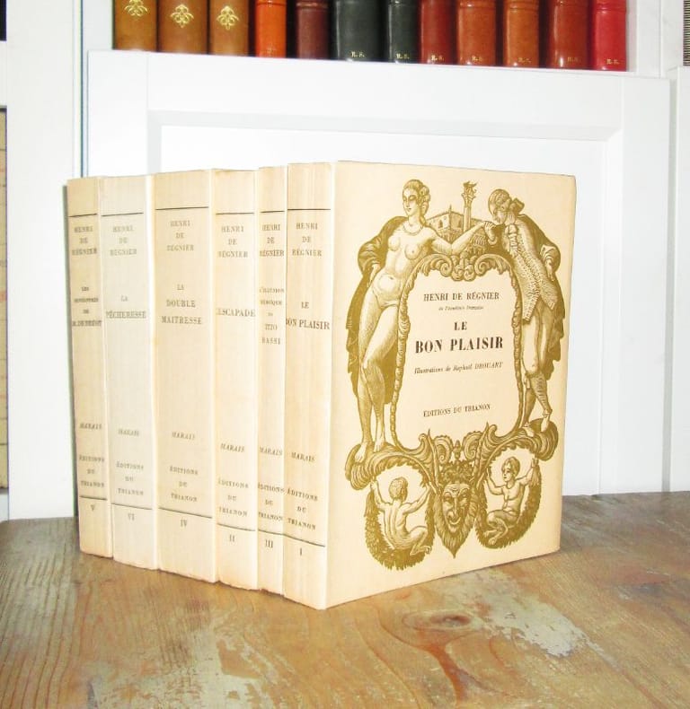 Editions du Trianon, 1929-1931. 6 volumes in-8 brochés (20,5 x 16 cm)? 320 - 291 - 161 - 502 - 290 - 373 pp., nombreuses illustrations hors-texte de Illustrations de Raphaël Drouart, de P. E. Vibert, de Constant Le Breton, de Pierre Dubreuil, de Georges Tcherkessof, de Pierre Gandon, de Raphaël Drouart., ornés de têtes de chapitre et culs-de-lampe. Edition au tirage limité et numéroté, notre collection le n° 1612 sur vélin de fil du Marais. Ensemble complet en très bel état de fraicheur.