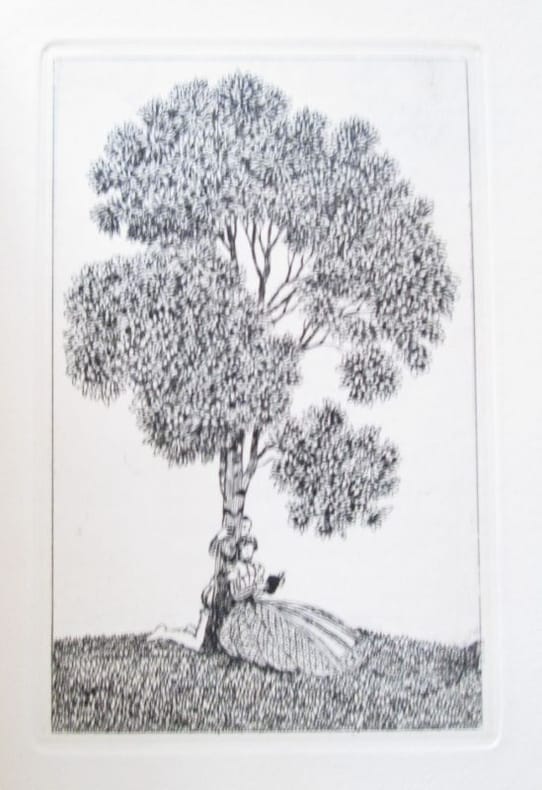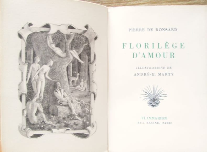 Flammarion, impr. Darantière, à Dijon, coll. « Les Classiques de l'Amour », 1953. In-12 broché ( 19,5 x 13,5 cm), 220 pages, illustré de dessins hors-texte par André - E. Marty , bandeaux, culs-de-lampe. Exemplaire du tirage numéroté sur sur Vélin Chiffon BFK contenant une eau forte originale de l'artiste, celui-ci le n° 23. Exemplaire très frais, bel état.