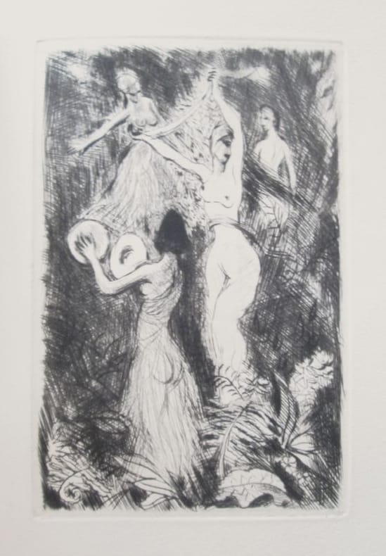 Flammarion, impr. Darantière, à Dijon, coll. « Les Classiques de l'Amour », 1953. In-12 broché ( 19,5 x 13,5 cm), 201 pages, illustré de dessins hors-texte par Gérard Cochet , bandeaux, culs-de-lampe. Exemplaire du tirage numéroté sur sur Vélin Chiffon BFK contenant une eau forte originale de l'artiste, celui-ci le n° 23. Exemplaire très frais, petit froissement en haut de la couv. sans gravité. Bon exemplaire.