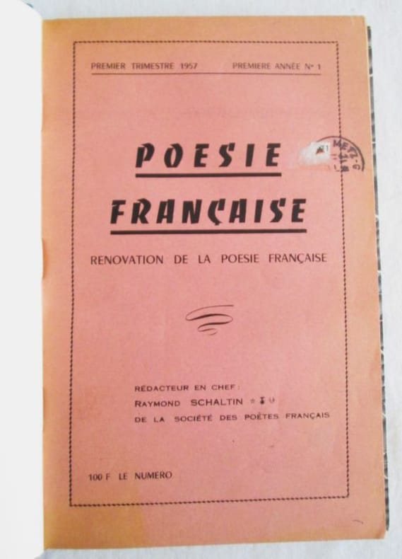 Rédacteur en chef : Raymond Schaltin. 1ère année :Du n° 1, 1er trim. 1957 au n° 4, 4e trim. 1957 ; 2e année :Du n° 1, 1er trim. 1958 au n° 3, 3e trim. 1958. Collection complète. 7 numéros en 7 livraisons en 1 vol. in-8 relié demi-percaline verte, titre doré sur pièce de basane rouge. Notes manuscrites de Vasseur (2 ff.). On Joint : 1 Lettre autographe signée de Jacques-Henry Bornecque (1960) sur papier à en-tête de lUniversité de Caen (il donne deux numéros à Vasseur). Textes de Jacques-Henry Bornecque, Jean Cocteau, Daniel-Rops, Édouard Fournier, Yves Gandon, Fernand Gregh, Pierre Grosclaude, Maurice dHartoy, Gaston Janet, Henri de Lacretelle, Georges Lecomte, Pierre Moreau, Vincent Muselli, Pierre Paraf, Tristan Rémy, Raymond Schaltin, etc Très bon état.