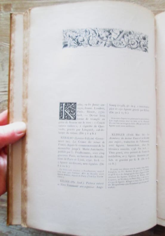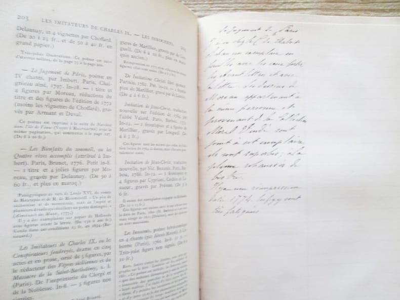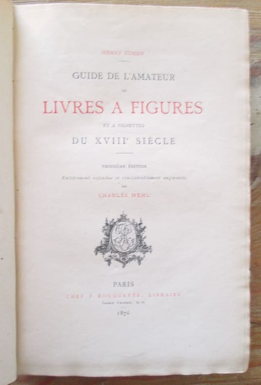 Chez P. Rouquette, 1876. Troisième édition entièrement refondue et considérablement augmentée par Charles Mehl. Grand in-8 relié de pleine percaline ocre (26 x 16,5 cm), titre doré sur pièce de basane noire, XIX-618 p., Préface de l'auteur, Index bibliographiques, notes. Table des ouvrages décrits dans le Guide. L'ouvrage est sous la forme d'un L'ouvrage est sous forme de dictionnaire par ordre alphabétique des auteurs et des titres pour les écrits anonymes : Les livres français imprimés et illustrés à l'étranger, les livres français imprimés en France, les livres étrangers imprimés à l'étranger mais illustrés par des artistes français. Des feuillets vierges sont intercalés dans le corps de l'ouvrage pour recevoir des notes. Certains d'entre eux ont des notes manuscrites à l'encre. Intérieur très frais, bon état.