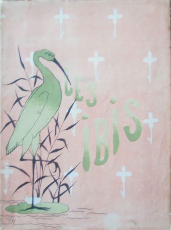 Annonay, Imp. J. Royer, N°1 (avril 1894)-n°4 (décembre 1894). Sous la direction de Henri degron et Tristan Klingsor. Complet des 4 numéros au format in-8, sous chemise et étui cartonnés et recouverts de toile rose et verte, 23 x 16 cm, couverture roses illustrées, 64 p. (pagination continue), Une illustration en couleurs tirée à part dans le n° 4 (Mme Fournier). Textes de Marius André, Henri Degron, Joachim Gasquet, Paul Géraldy, Francis Vielé-Griffin, Trystan Klingsor, Henri de régnier, Paul Souchon, André Gide, Adolphe retté, Achille delaroche, Maurice Quillot, Paul redonnel, Alfred Massebieau, Albert Saint-Paul. /// Henri Dominique Degron est né à Yokohama au japon en 1871, où son père était receveur des Postes françaises. Il abandonna des études de droit pour la bohème parisienne et se lia avec les poètes Jean Moréas et Adolphe Retté. En 1894 il fonda avec Tristan Klingsor la revue "Les Ibis". Il fut ensuite un temps journaliste à Roanne avant de devenir un critique régulier de la revue La Plume. Il publia trois recueils de poésies : Corbeille ancienne (1895), Poèmes de Chevreuse ou Les Villanelles à la Vallée (1902) et ce poème en prose "Pèlerinage" en 1904. RARE, très bel état.