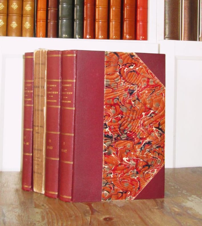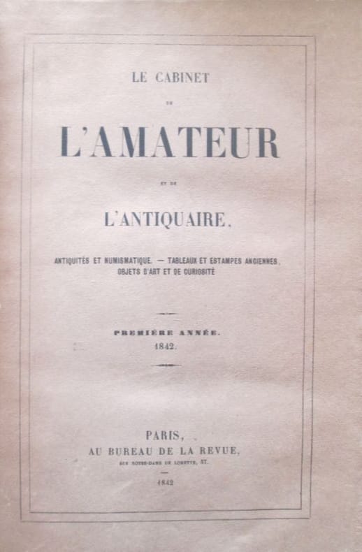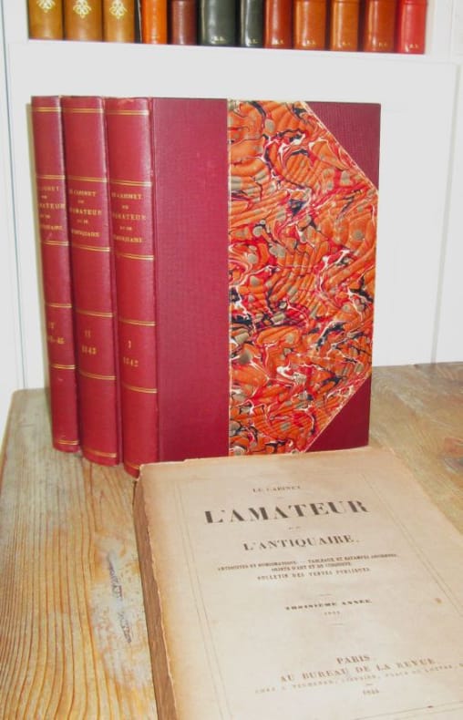 Paris, Au Bureau de la revue, 1842-1846. 4 vol. in-8 (25 x 16,5 cm) dont 3 sont reliés avec les couvertures conservées, et un broché (tome III). Manque la planche dErnest Meissonier : « Le Fumeur » (qui manque dans la presque totalité des exemplaires). Textes de Albrecht Durer, Théophile Gautier, Arsène Houssaye, Jules Janin, Prosper Mérimée, Gérard de Nerval, Eugène Piot, Victor Schlcher, Jean Van Eyck, Robert Dumesnil, Arsène Houssaye, etc. Bien complet de l'eau-forte d'Eugène Delacroix, "Le Christ au rameau d'olivier" gravée pour Le Cabinet de l'amateur, frontispice du tome 3 (Delteil, 14), complet de l'eau-forte de Chassériau, E. Vattier. Quelques rousseurs inégalement.