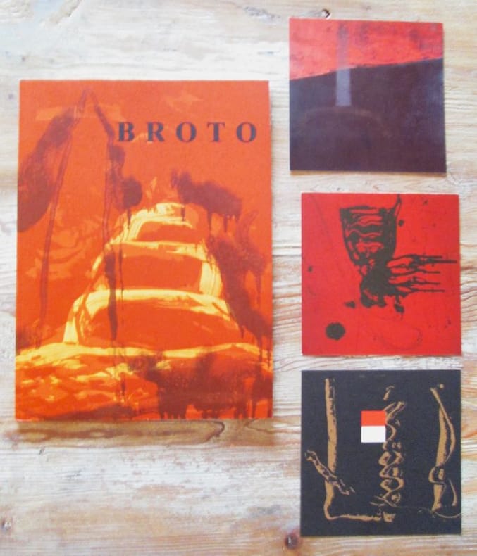 Galerie Adrien Maeght, 1984-1989. Réunion de quatre catalogues, couvertures en couleurs : "Broto : Peintures", 1984, 30 p., vingt-cinquième catalogue Maeght, texte de Ramon Tio Bellido - "Broto, préface de Didier Ottinger", 1986, 32 p., trente-sixième catalogue Maeght . "Broto : Peintures 1989" texte de Olivier Kaeppelin, 1989, 22 p., soixante-sixième catalogue - . On joint 3 cartons d'invitation à des vernissages (1986-1987-1989) Tous les catalogues sont illustrés en noir et en couleurs. Très bel état.