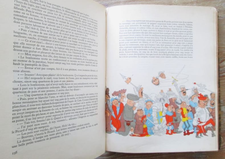 In-4 (26 x 20,5 cm), broché, (4) ff. - 368 - (2) pp. - (2) ff., non rogné, en partie non coupé, couverture illustrée rempliée. Illustrations en couleurs par Albert DUBOUT. Troisième tirage, limité à 3000 exemplaires numérotés (N° 1916). (bon état, quelques défauts d'usage). // Quarto (26 x 20,5 cm), softcover, (4) ff. - 368 - (2) pp. - (2) ff., uncut, partly unopened, illustrated folded softvcover. Illustrations in colours by Albert DUBOUT. Third printing, limited to 3000 numbered copies (Nr 1916). (good copy, some defects of use).