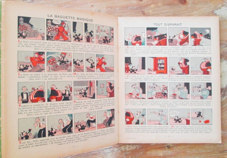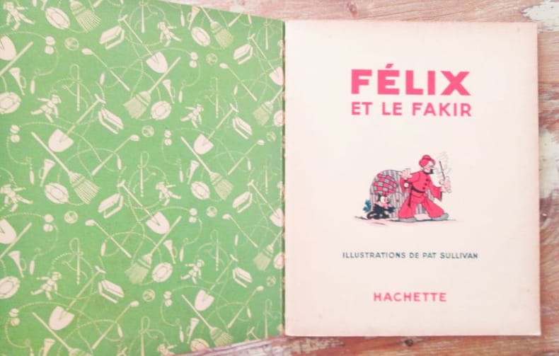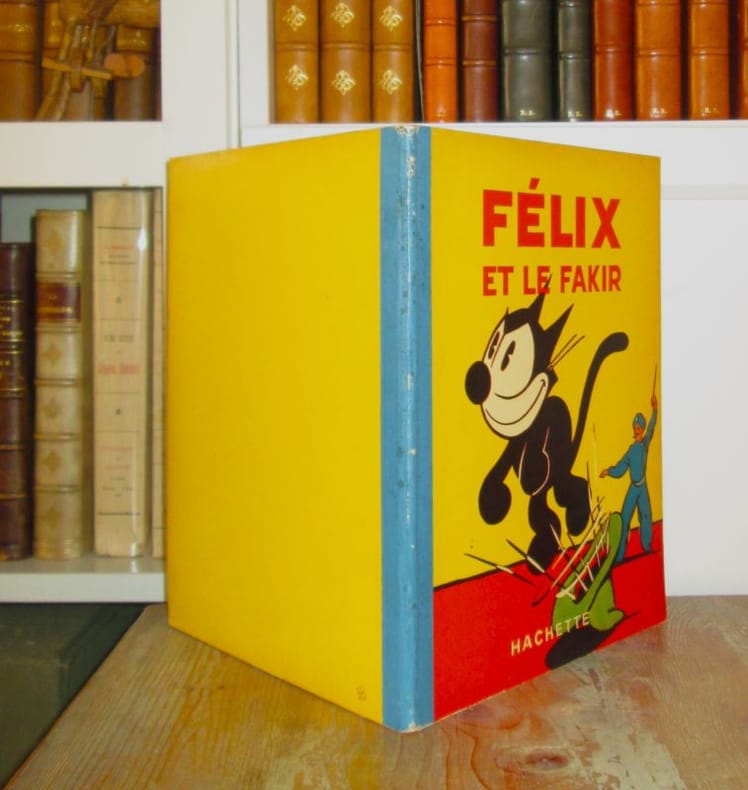 Paris. Hachette. 1938. Collection : Albums" Félix le Chat" n° 15. Album In-4 (21,5 x 26,5 cm). Cartonnage éditeur au premier plat illustré, dos de toile bleue, gardes vertes illustrées, 32 pages. Bandes dessinées en couleurs, illustrations de Pat Sullivan. Bon état général.