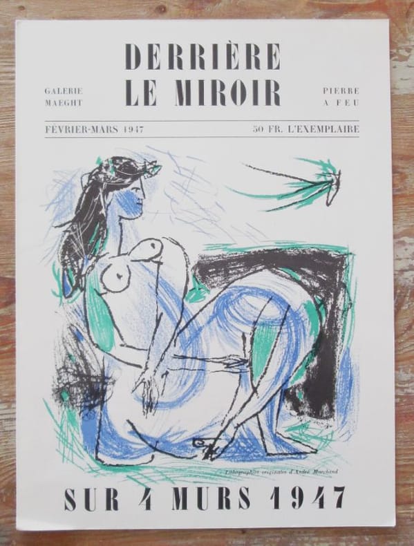Galerie Maeght, Paris : Éditions Pierre à feu: Derrière Le Miroir n°2, deuxième édition - "Sur 4 murs 1947" édité en 1947 pour accompagner l'exposition MARCHAND à la Galerie Maeght, au format 38 x 27,5 cm. Textes originaux de SEUPHOR, GUILLY et KOBER. 8 pages avec 6 illustrations en lithographie originale de André Marchand Très bon état
