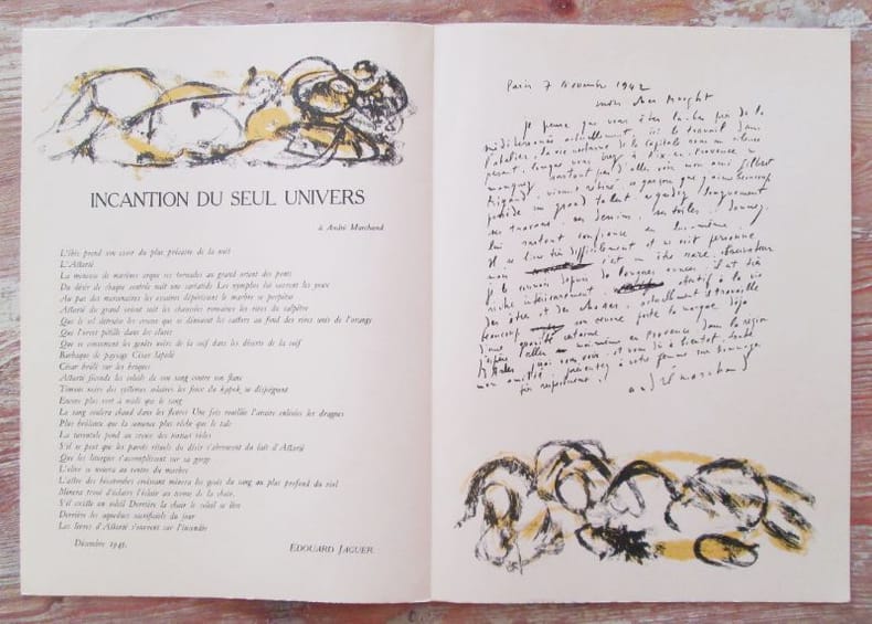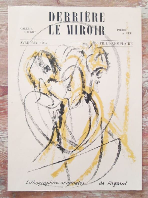 Galerie Maeght, Paris : Éditions Pierre à feu: Derrière Le Miroir n°3, deuxième édition - édité en 1947 pour accompagner l'exposition RIGAUD à la Galerie Maeght, au format 38 x 27,5 cm. Textes originaux de Jean LEYMARIE, Edouard JAGUER et Jacques KOBER. 8 pages avec 6 illustrations en lithographie originale de Rigaud Très bon état