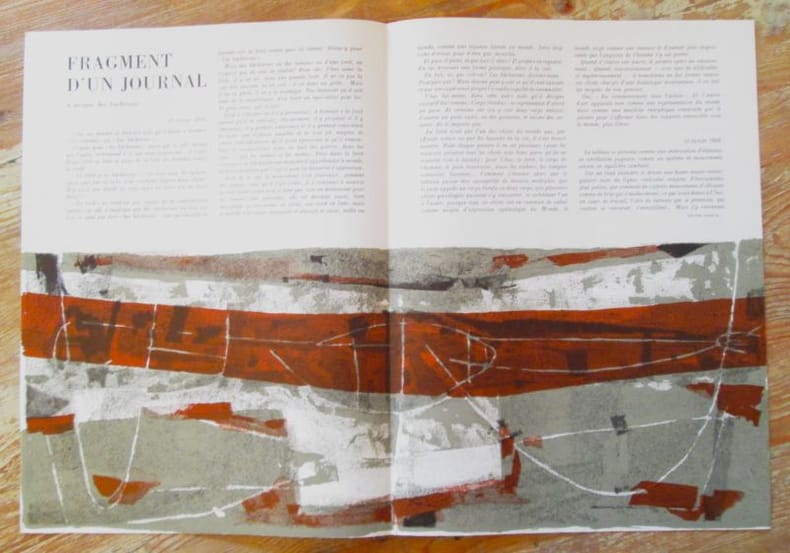 Galerie Maeght, Paris : Éditions Pierre à feu: Derrière Le Miroir n° 35, deuxième édition - accompagnant l'exposition Raoul UBAC à la Galerie Maeght en 1950, au format 38 x 27,5 cm. Textes originaux en français d'André FRENAUD. 10 pages incluant 3 illustrations en lithographie originale. Très bon état