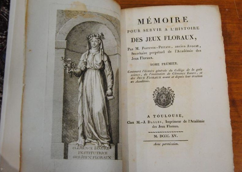 Rare.Premier texte qui démontre que Clémence Isaure personnage médiéval semi-légendaire à qui l'on attribue la fondation des Jeux Floraux n'a jamais existé.Cette institution littéraire, une des plus anciennes et des plus célèbres d'Europe était connue sous le nom de "Collège du gai savoir". Cet ouvrage est un monument à la gloire de cette société poétique occitane presque milléniare.