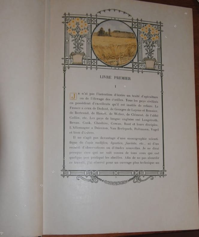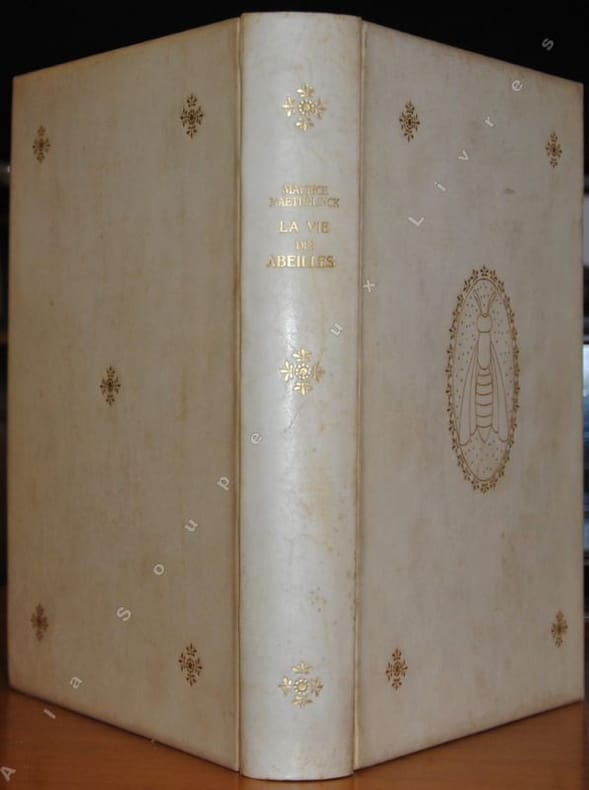 P., Ferroud, 1914-1918. Grand in 8, couverture illustrée conservée, 256 pp. + feuillet de table. Plein maroquin, tête dorée, triple filet doré sur les plats, dos à nerfs orné d’une ruche et d’un essaim d’abeilles, dentelle intérieure, garde soie, [reliure signée Durvand].