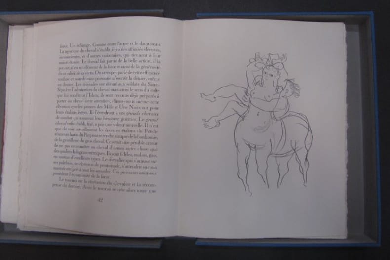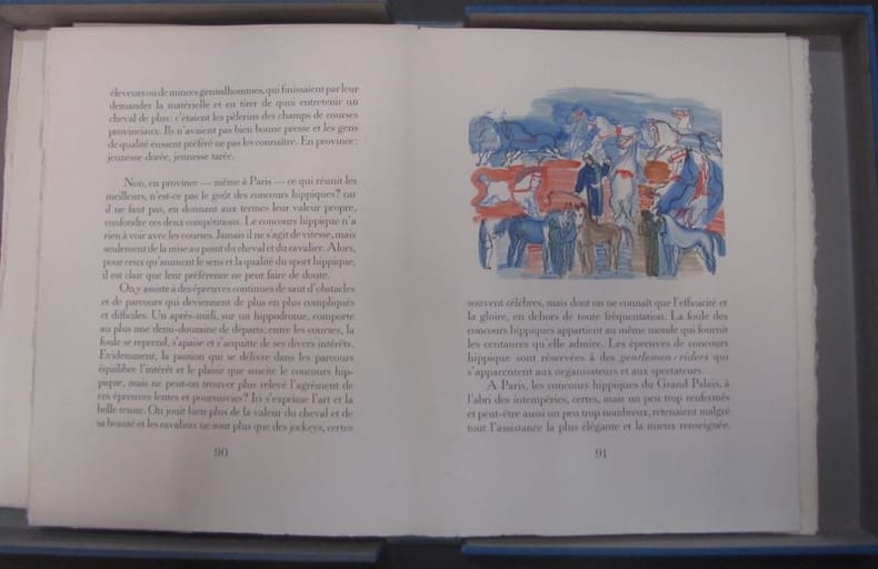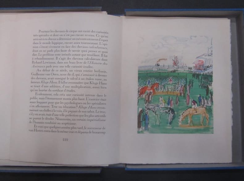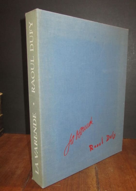 P., De Tartas, 1957, in folio en feuilles sous couverture ocre et emboitage de pleine toile bleue, 117 pages et XVII pages ("La vie heureuse de Raoul Dufy" par le Dr A. Roudinesco) ; emboitage insolé, particulièrement le dos.