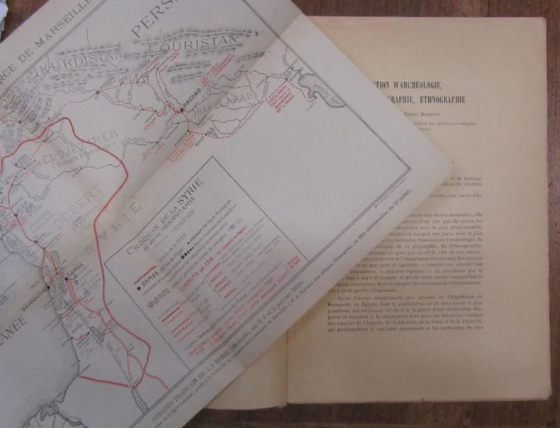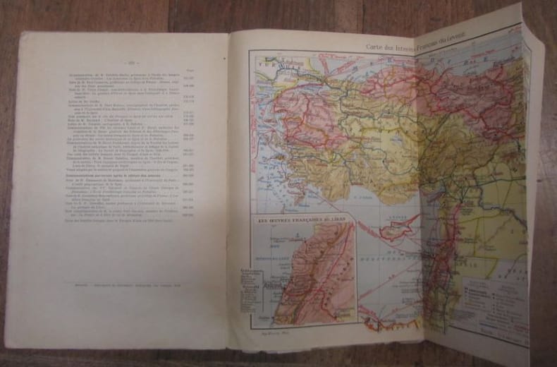 RARE. Bien complet de la carte en couleurs des intérêts français au Levant, et de la carte volante dépliante : Croquis de la Syrie et de la Mésopotamie. ...................... Photos sur demande ..........................
