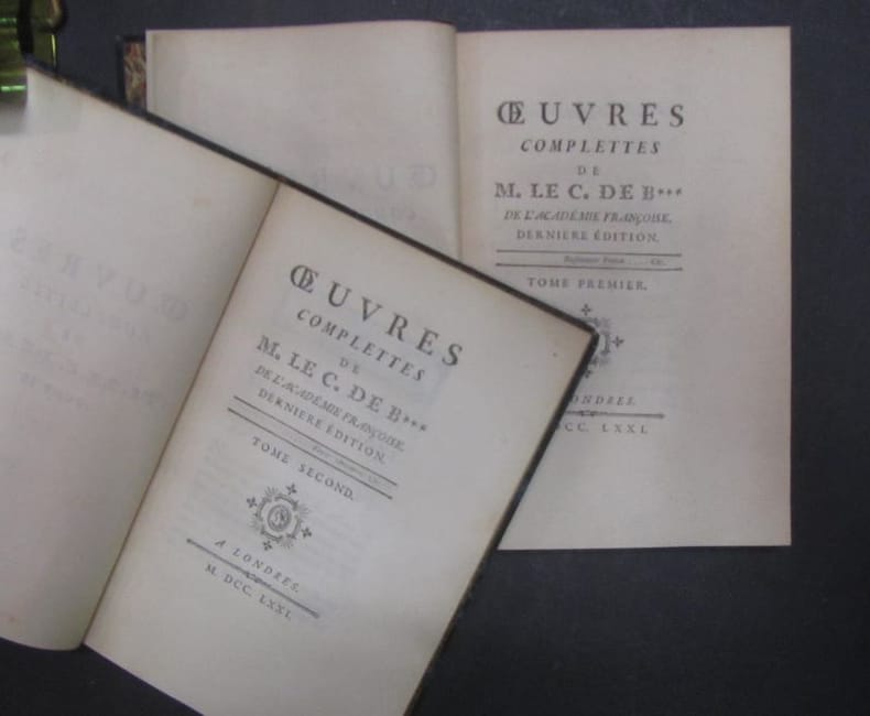 1771 Londres, 1771, 2 volumes petit in 8° reliés demi-basane bleu nuit, dos lisses ornés, 215 et 187 pages ; quelques rousseurs et petits frottis.