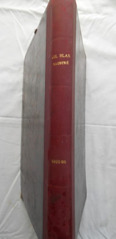 1891 GIL BLAS.Illustré .Au dépot du journal , 1893 -1894 , un vol in folio (30x40) 1/2 toile rouge.Du n° 1 (1-1-1893) au n° 52 ( 20-12-1894) soit 105 n°s .Très bon état.Textes de Barbey d'Aurevilly , Mallarmé ,Lorrain , Baudelaire , Verlaine...Illustrations de Steinlen , Chéret , Gerbault ,Guillaume.....