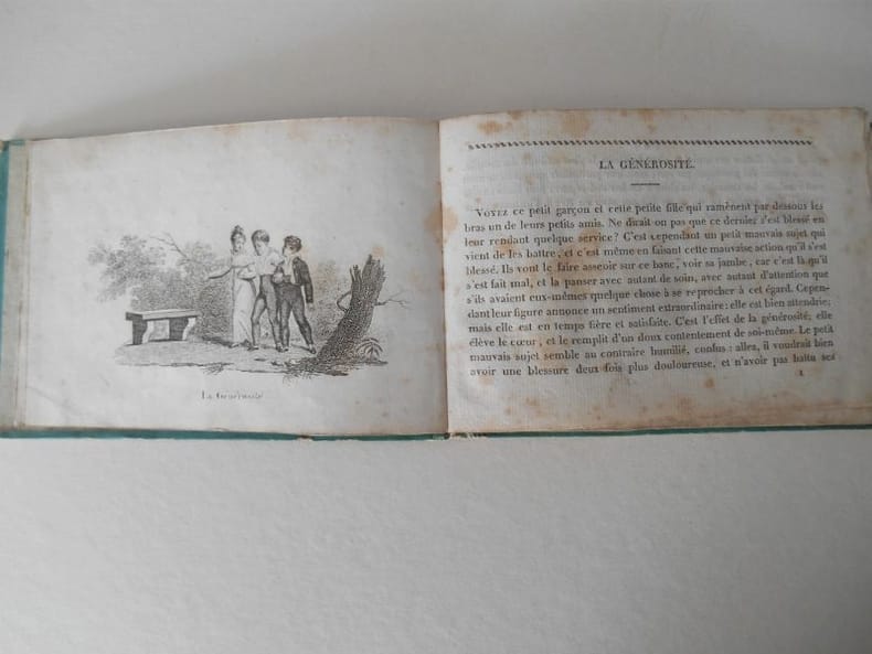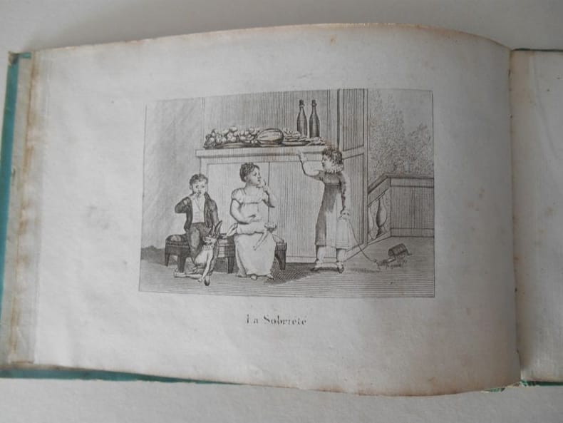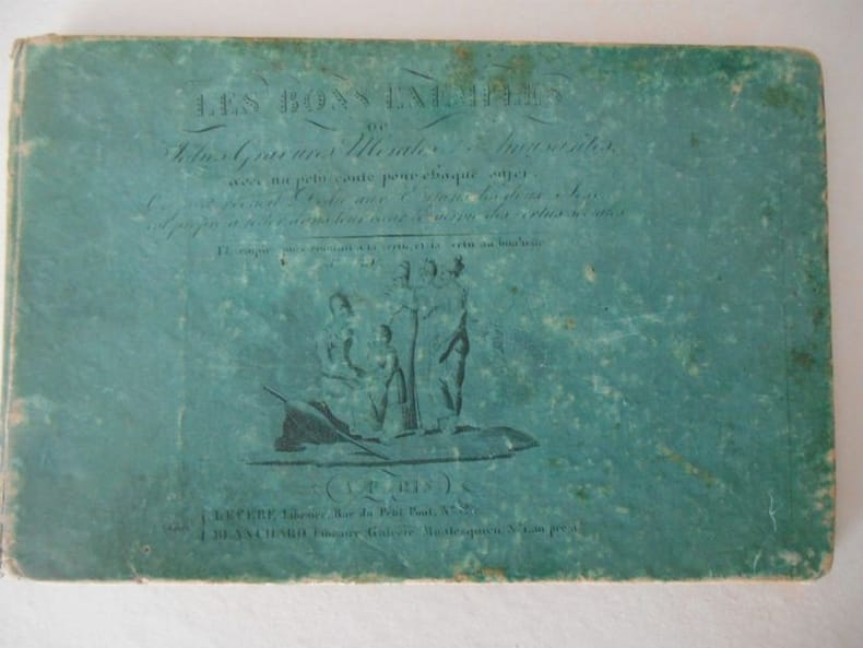 1618 LES BONS EXEMPLES . Ou jolies gravures morales et amusantes avec un petit conte pour chaque sujet....P , Lecerf - Blanchard , sd (début XIXè) in16 à l'italienne (18,5x12)cartonnage éditeur18pp.10 gravures à pleine page .Le dernier conte " La modestie"n'a pas de gravure.Couverture frottée , mais ouvrage bien solide.Inégales rousseurs .