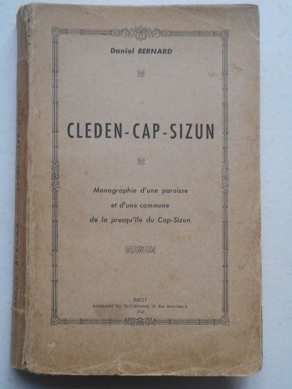 1952 CLEDEN CAP SIZUN . Monographie d'une paroisse et d'une commune de la presqu'île du Cap Sizun.Brest Le Télégramme, 1952 , gr in8(14x23) broché, 331pp.Texte du dos manuscrit.