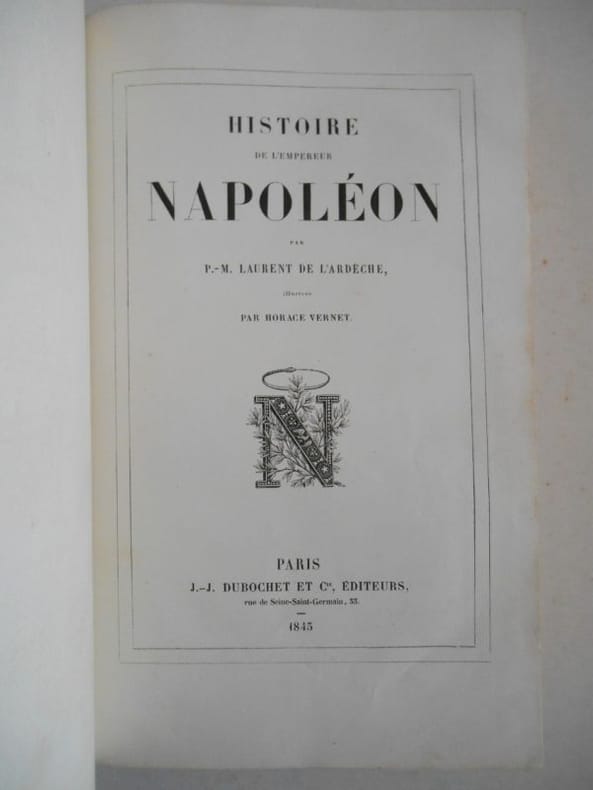 1843 HISTOIRE DE L ' EMPEREUR NAPOLEON Illustrée par Horace Vernet.P , Dubochet , 1843 , in4° 1/2 chagrin bleu nuit à coins, 832 pp.Frontispice et près de 500 vignettes d ' H Vernet.Très bel exemplaire .