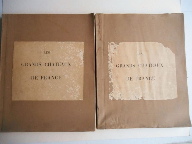 1907 LES GRANDS CHATEAUX DE FRANCE.Lahure , 1907 , 2 vols in folio(32x40) broché,couverture d'attente muette,238 - 238pp.Abondantes illustrations.Exemplaire nominatif.Tiré à 600 exemplaires numérotés sur papier de luxe.Près de 200 châteaux répertoriés et étudiés.Couverture des plus modeste , exemplaire en très bon état . Un petit manque au bas de la dernière page