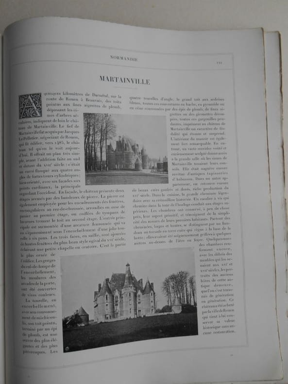 Douai, Imprimerie Paul Dutilleux, 1897. 271 x 189 mm., page de titre, introduction, présentation de chaque château, 90 planches de phototypies, chaque planche est protégée par une feuille de papier de soie, broché, dos et bords des couvertures insolés, envoi de l'auteur au verso de la page de titre, bel exemplaire.