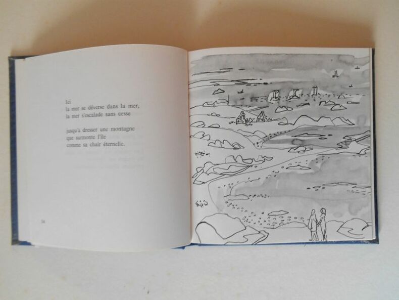 1977 POEME DE L ' ILE ET DU SEL .( Illustrations de René Quéré)Quimper , Telen arvor , 1977 , in12 carré(15x15) reliure éditeur, 142 ppUn nom discret en haut de la page de titre.