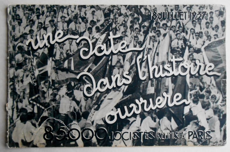 1819 18 Juillet 1937 . 85000 jocistes réunis à Paris . Une date dans l' Histoire ouvrière.In8 à l'italienne (30x19,5) broché, 48 pages,une photo panoramique double volante.Dos fragile.Très bon état intérieur.