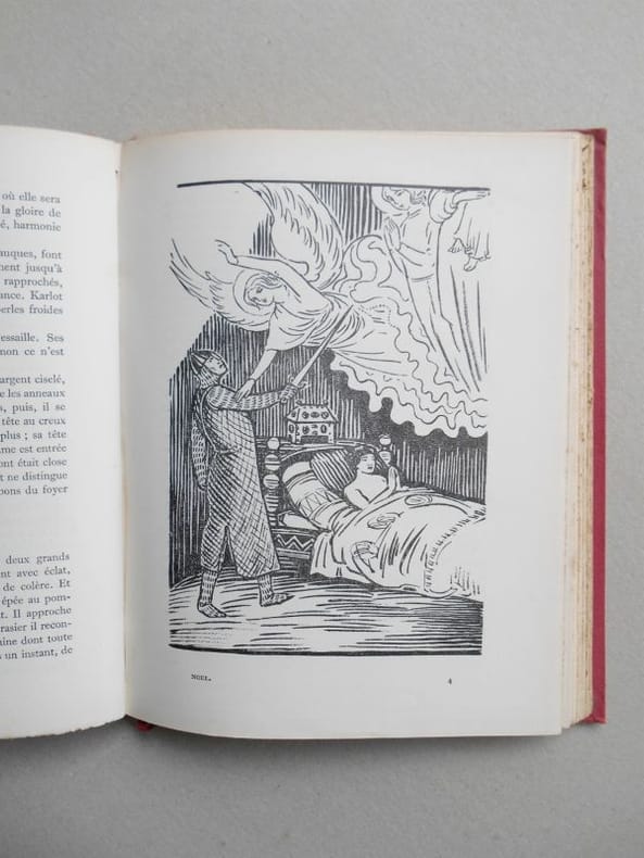 CONTES POUR LA NUIT DE NOELIllustrations de Malo RenaultLes beaux livres du foyer, sd , in4°(19x24) toile rouge illustrée éditeur ,147pp , couverture illustrée conservée..Illustrations à pleine page, dans le texte par Malo Renault.Un des 250 velin pur fil lafuma numéroté (125) .