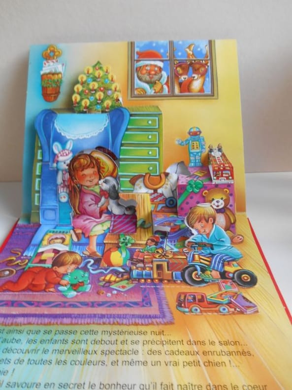 2004 PAPA NOEL.Texte C Busquets , Illustrations R Rahir.Hemma , 2004 , in8 '21x24,5) cartonné.Comprends 4 compositions découpées en relief.Traces de pliure sur un personnage de la dernière scène.Très bon état.