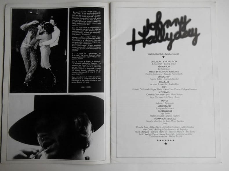Livret illustré de nombreuses photographies en noir du rocker par Jacques Aubert, Claude Delorme, Bob Lampard, Reporters associés, Hugues Vassal et Wiezniack. A l’affiche: Robert Morel, Anne-Marie Seguela, Françoise Puech, Odette Ducarre, Claude Dejacques. Edition originale, tirage non mentionné. Exemplaire, nous ne le répéterons jamais assez, SANS le disque.
