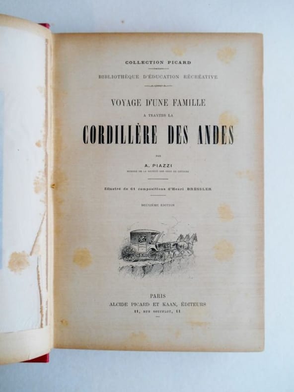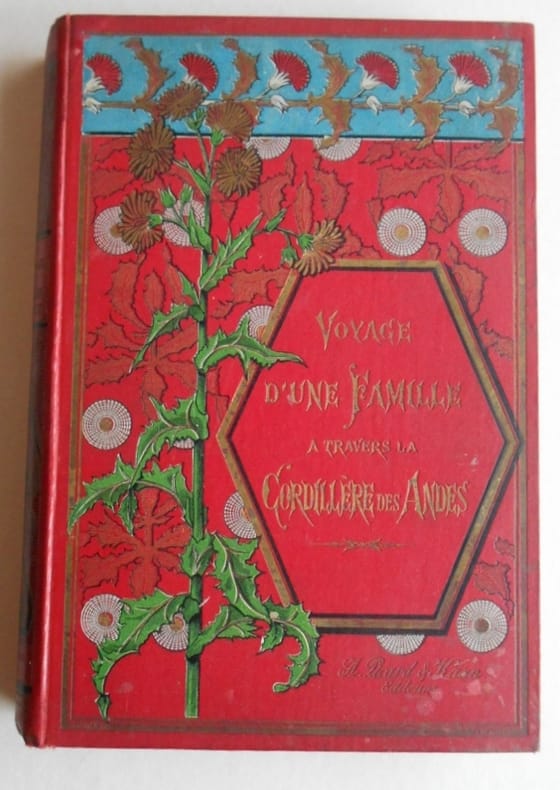 VOYAGE D'UNE FAMILLE A TRAVERS LA CORDILLIERE DES ANDES Illustré de 61 compositions d' Henri Bressler.Deuxième éditionAlcide Picard et Kaan , sd (v1900), in4° (20x30) percaline illustrée éditeur,tranches dorées , 320pp.Dorures légèrement fanées.