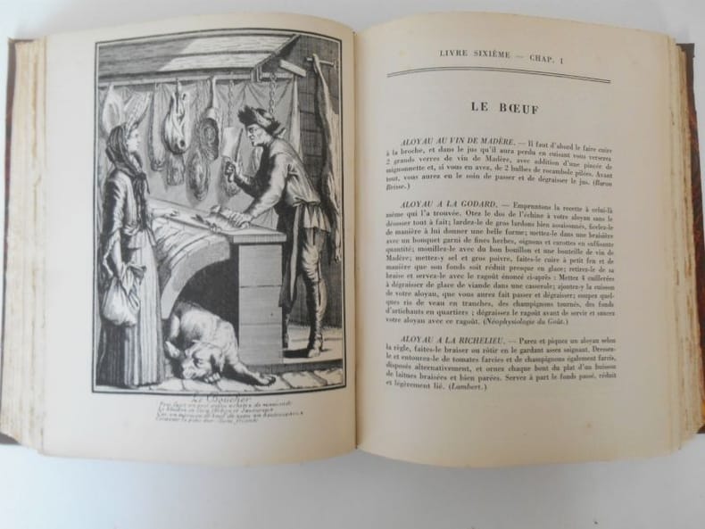 Paris Pierre Belfond / La bibliothèque gourmande 1980 un fort volume grand in-8°, XCI 654 pp. Reliure éditeur toilée à la bradel, dos titré, premier plat illustré, jaquette. (jaquette défraîchie en pourtour : frottements, coupures et marques, léger tassement en queue de dos). Illustrations en noir (documents d'archives). Bertrand Guégan homme de lettres, historien et critique.