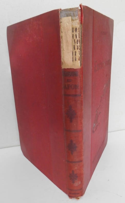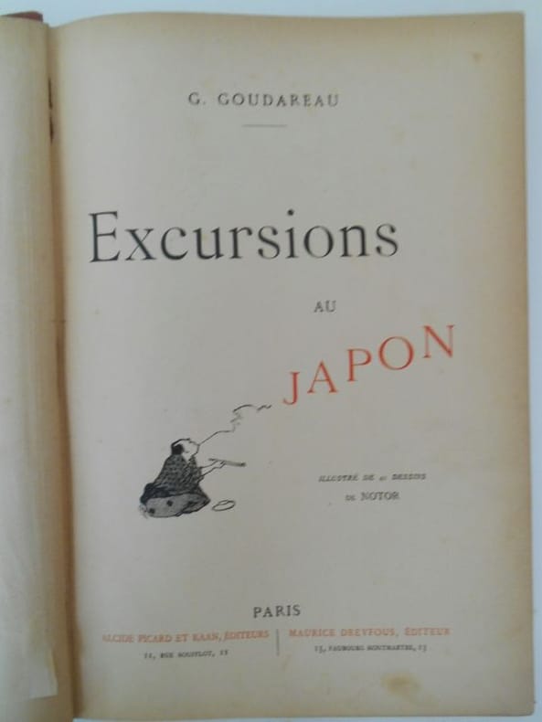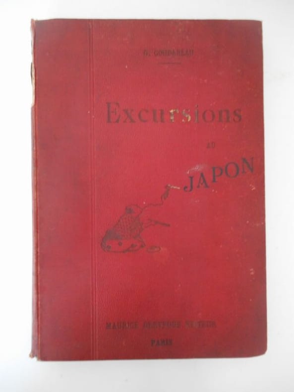 EXCURSIONS AU JAPON .Illustré de 42 dessins de Notor.P , Picard et Kaan / Dreyfous , sd ( v 1900) ; in4° percaline rouge illustrée éditeur , 310 pp .Manque la partie supérieure du dos. Sinon , très bon état.