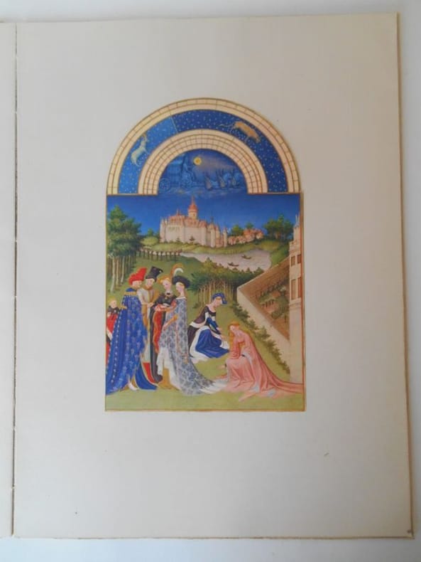 Calendrier de 12 illustrations hors-texte reproduites en couleurs contrecollées d'après Pol de Limbourg et Jean Colombe, musée de Condé, Chantilly. Revue VERVE.