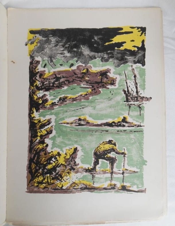 1958 ESPINOUZEDesjobert , 1958 , grand in4°(25x34) en feuilles sous couverture .Exemplaire numéroté nominatif avec la signature du peintre.Jaquette défraichie (fentes aux extrémités , taches) . Intérieur en très bon état.