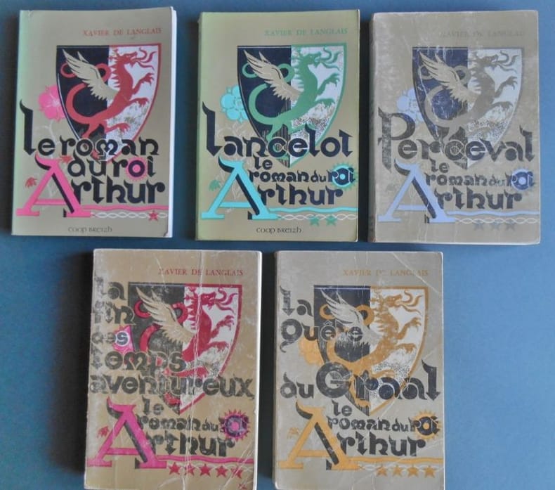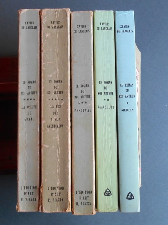 1984 LE ROMAN DU ROI ARTHURPiazza et Coop breizh , 1984 - 1994-1995 , 5 vols in8 brochés , 229 - 277 - 275 - 278 -372 pp.T 1 - 2 Piazza 1994 et 1995 , T 3 - 4 - 5 : 1984Couvertures , têtes de chapitre , culs de lampes illustrés par X de LanglaisT 3-4-5 : couvertures défraichies . Intérieur des 5 volumes en très bon état.