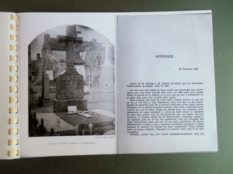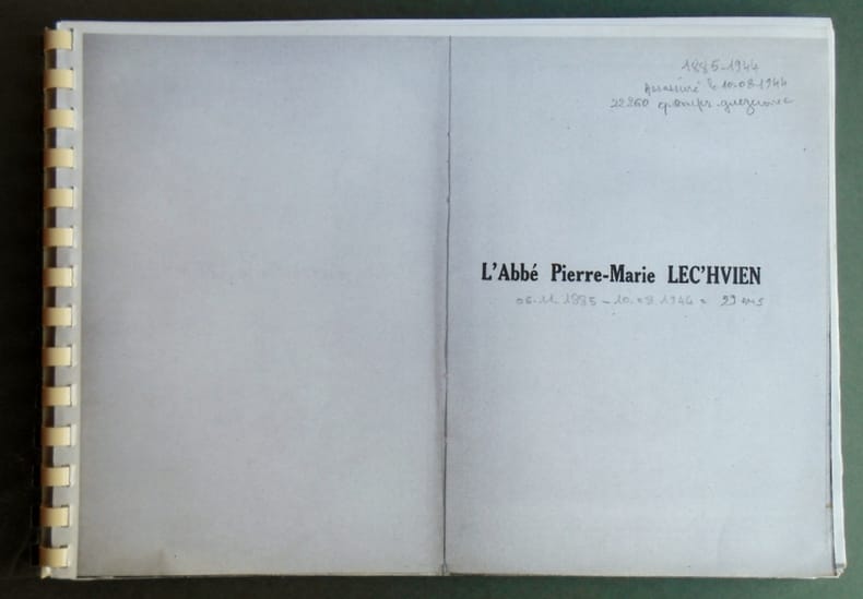 1885 L'ABBE PIERRE MARIE LEC'HVIEN (1885 - 1944)2è édition - Juin 1959Livre photocopié relié avec une spirale sous rodhoid , 109 p .