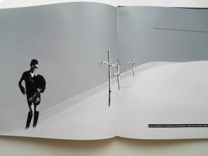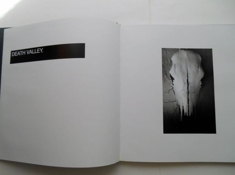 2007 DEATH VALLEY . Spring Summer 2007T W ,2007 , in4° carré (31x31)toilé , sous emboitage toilé , 92 pages.Introduction en anglais puis des photos à pleine page ou sur double page .Emboitage légèrement taché , livre parfait état.Le désert californien sublimé par Paula Thomas et ses 2 mannequins.