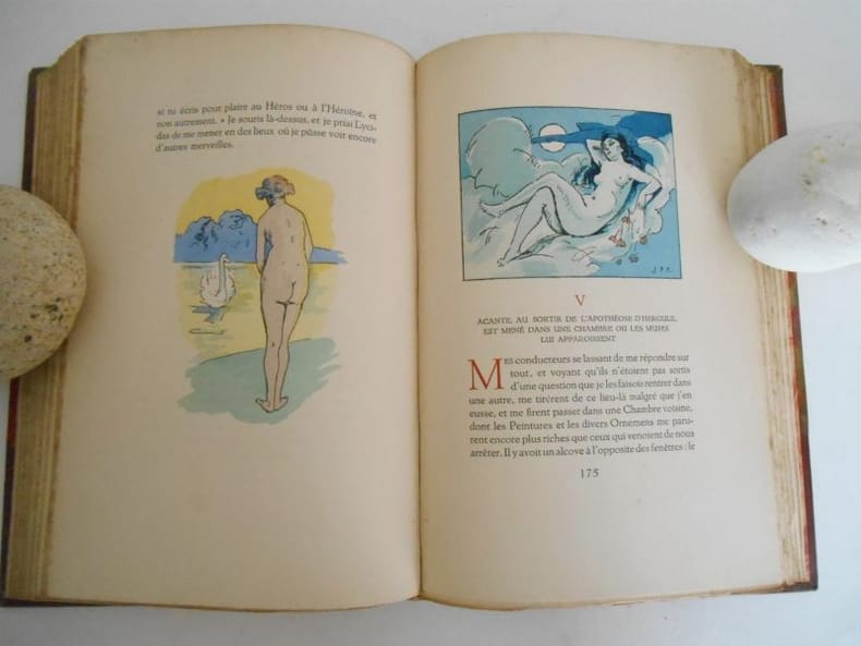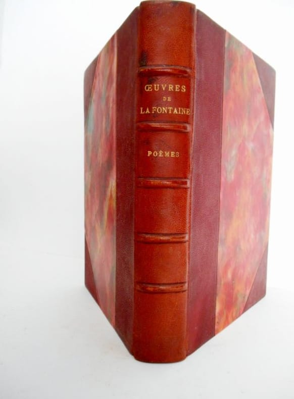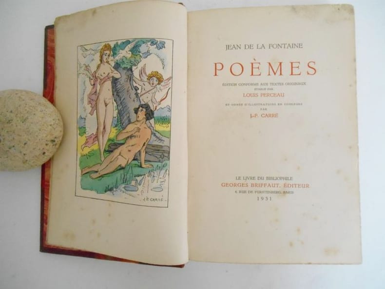 1933 POEMESEdition conforme aux textes originaux , établie par Louis PerceauOrnée d'illustrations en couleurs par J P Carré.Le Livre du bibliophile - Georges Briffaut , 1931 -,in8(17x24) 1/2 chagrin rouge à coins, tête dorée , couvertures conservées ,282 pp .Edition numérotée sur velin de rives (491)Importante trace d' humidité affectant le haut des premières et dernières pages .