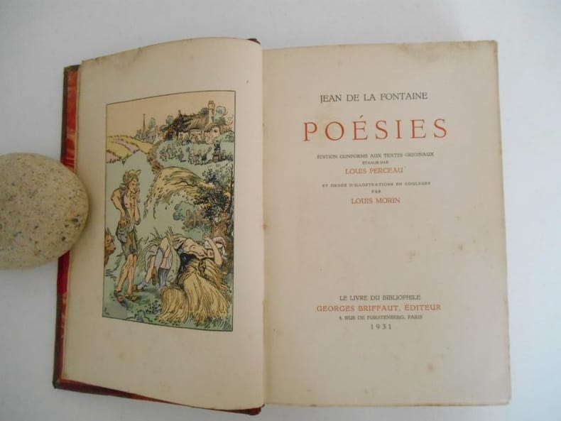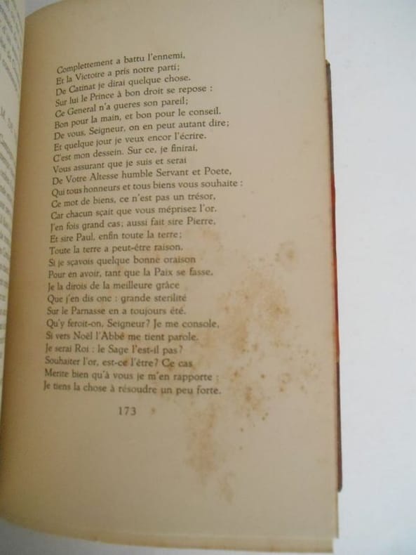 1933 POESIESEdition conforme aux textes originaux , établie par Louis PerceauOrnée d'illustrations en couleurs par L Morin.Le Livre du bibliophile - Georges Briffaut , 1931 -,in8(17x24) 1/2 chagrin rouge à coins, tête dorée , couvertures conservées .Edition numérotée sur velin de rives (491)Importante trace d' humidité affectant le haut des premières et dernières pages .