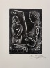 Genève, Gérald Cramer Éditeur, 1984. In-folio en feuilles, couverture beige à rabats, étui de l'édition. Édition originale. Portefeuille comprenant six gravures sur Linoléum de Marc Chagall, toutes numérotées et signées. Tirage à 50 exemplaires sur grand vélin de Rives, celui-ci le numéro 14 sur 40. Ce rare portefeuille débute avec un poème de Marc Chagall s'intitulant "Pour Vava", faisant référence à sa femme, Valentina Brodsky. Ce poème, comme les légendes des six gravures, proviennent du recueil "Poèmes" édité chez Gérald Cramer en 1975. Ces gravures sur linoléum, gravées entre 1981 et 1983 à Saint-Paul-de-Vence sont les suivantes: I, il y à là-bas aux aguets une croix; II, Comme un barbare je colore ta face; III, Ton Visage dans les fleurs fraîches; IV, La nuit, il vole un ange dans le ciel; V, Ton odeur dans ma main s'est endormie; VI, Faut-il peindre la terre, le ciel, mon coeur. Cramer 118.
