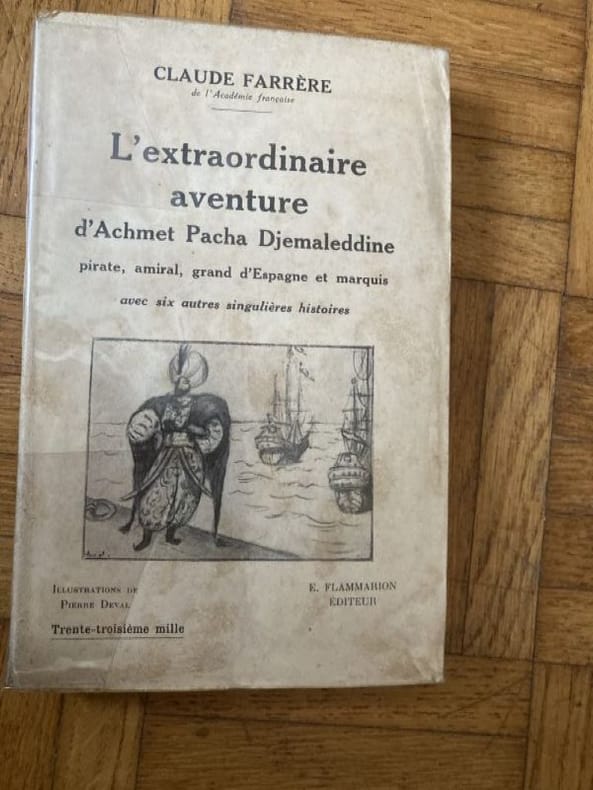 Edition originale. Exemplaire revêtu d'une très jolie reliure du temps signée Hautecoeur ; par ailleurs truffé d'une carte de visite volante imprimée agrémentée d'un long envoi manuscrit signé de Claude Farrère. L'ouvrage s'agrémente - ici en premier tirage - de compositions de Pierre Deval. Lequel, en ''1916 et 1917 étudia à la Grande-Chaumière dans les ateliers de Lucien Simon et de René Ménard. Il séjourne à Alger de 1922 à 1924. Parfois paysagiste, il est surtout peintre de figures. Son style est largement influencé par le post-impressionnisme''. (in Bénézit). ''Quiconque a voyagé en Orient, j'entends dans l'Orient musulman, et au temps qu'il était encore des hans et des caravanes, a connu ces chanteurs de légendes dont on trouve encore de beaux spécimens sur la place du Néant, à Marrakech''... Bénézit III, Dictionnaire des peintres, p. 545. Mors et coiffes légèrement frottés. Petit manque en marge d'un feuillet. Papier oxydé. Du reste, belle condition.