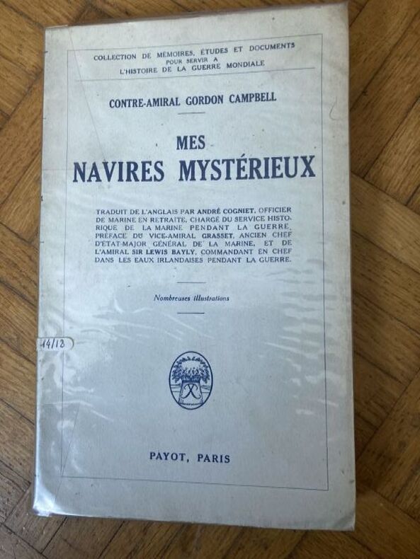 1929, Payot, collection de mémoires, études et documents pour servir à l'histoire de la guerre mondiale, in-8 broché de 250 pages, Mes navires mystérieux, nombreuses illustrations | Etat : assez bon état, couverture défraîchie, coins et coiffes abîmées, coiffe inférieure absente (Ref.: ref87755)