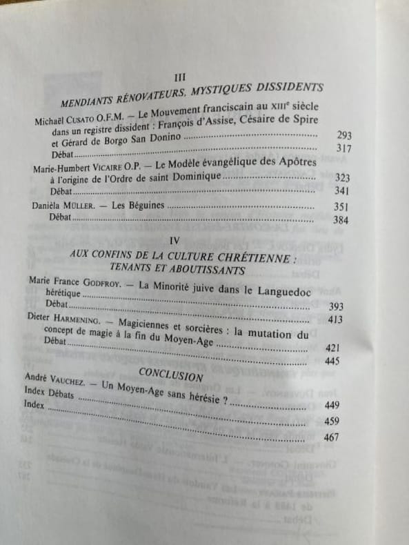 Actes de la 2ème session d'Histoire Médiévale de Carcassonne organisée par le C.N.E.C. / Centre René Nelli, 28 août-1er septembre 1989, sous la présidence du Pr André Vauchez. Une douzaine de contributions traitant des mouvements dissidents et novateurs du christianisme médiéval