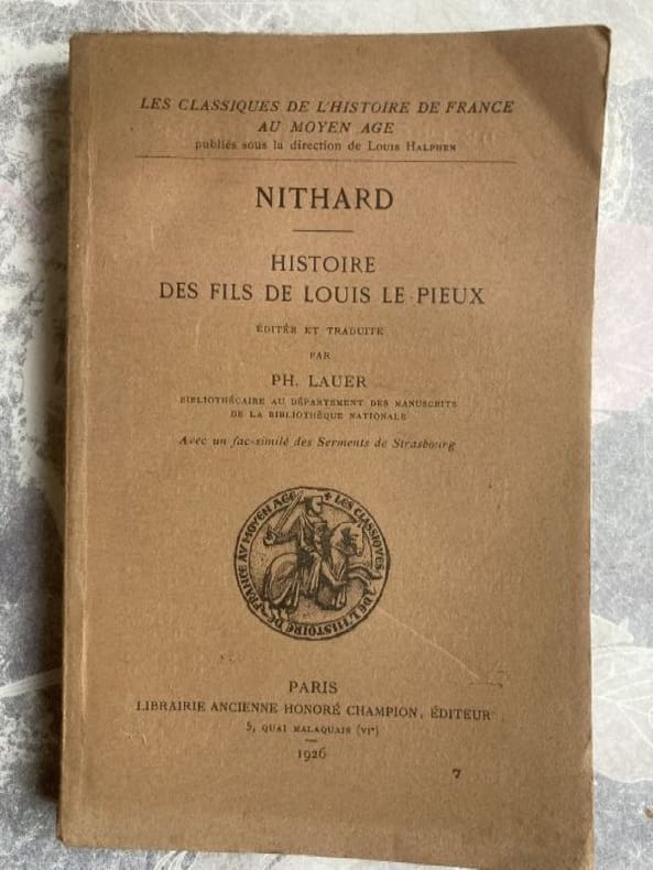 Paris Société d'Edition Les Belles Lettres 1964 in 8 (20x13) 1 volume broché, XX et 172 pages, avec une planche hors texte sur double page: Fac-similé des serments de Strasbourg. Texte latin et traduction française en regard. Editée et traduite par Ph. Lauer. Les Classiques de l'histoire de France au Moyen Âge. Deuxième tirage. Bel exemplaire ( Photographies sur demande / We can send pictures of this book on simple request )