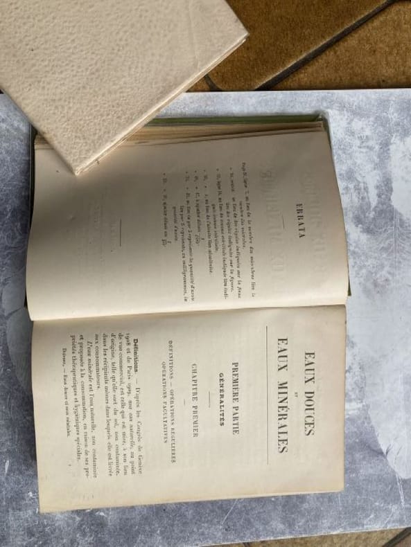 1734 Couverture rigide A Amsterdam, chez Pierre Mortier, 1734. 2 forts volumes in-12, reliure pleine basane d'époque, dos à 5 nerfs orné, pièce de titre rouge, coins émoussés, charnières frottées, manque à la charnière inférieure du tome 2, charnière du premier plat légèrement fendillée en bas du dos. Tome 1 : 1 feuillet non chiffré, VIII pages, 1 feuillet non chiffré, 420 pages ; Tome 2 : page de titre, frontispice, 515 pages. Le tome 1 contient 6 planches dépliantes, le tome 2, 6 planches également (5 dépliantes et un frontispice). Petite galerie de vers sur la page de titre du tome 1, sans atteindre le texte ; marques à l'encre sur la page de titre des 2 tomes (pour masquer le nom du propriétaire). Ouvrage consacré à la ville de Spa et ses environs. Pour les amoureux de l'eau pétillante ! Planches bien conservées, bon exemplaire.