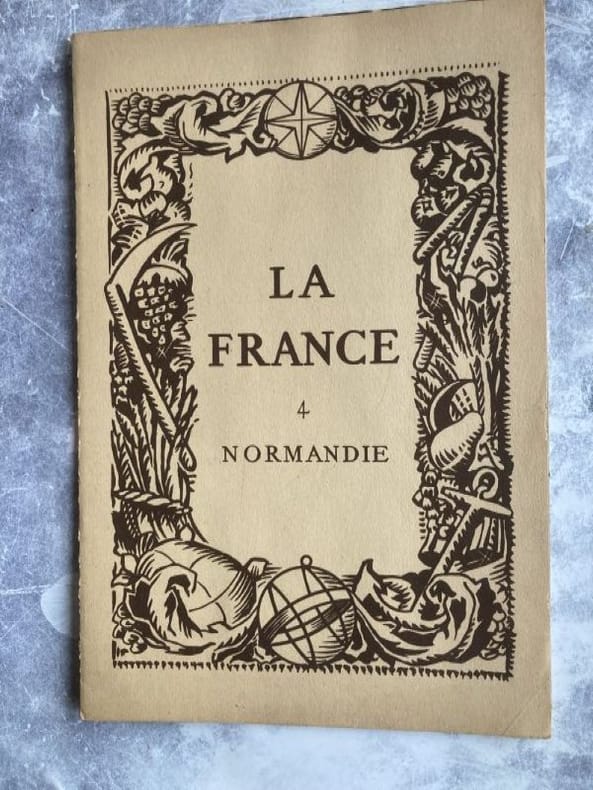 broché - 18x27 - 4 pp - sans date - édité en hommage au corps médical par les laboratoires MARINIER, 23, rue BALLU, Paris. N° 4. 2 pages : quelques aspects typiques de la NORMANDIE actuelle, en photographies noir et blanc2 pages centrales : reproduction d'une carte ancienne en couleur .