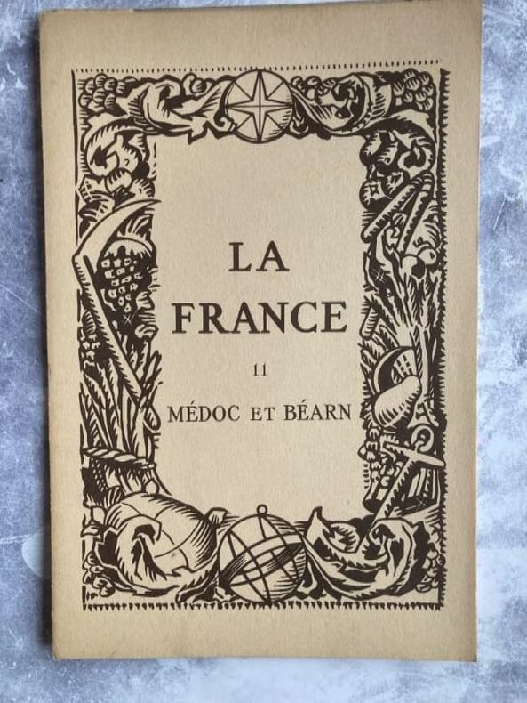 broché - 18x27 - 4 pp - sans date - édité en hommage au corps médical par les laboratoires MARINIER, 23, rue BALLU, Paris. N° 11. 2 pages : quelques aspects typiques du MEDOC et BEARN actuels, en photographies noir et blanc2 pages centrales : reproduction d'une carte ancienne en couleur .